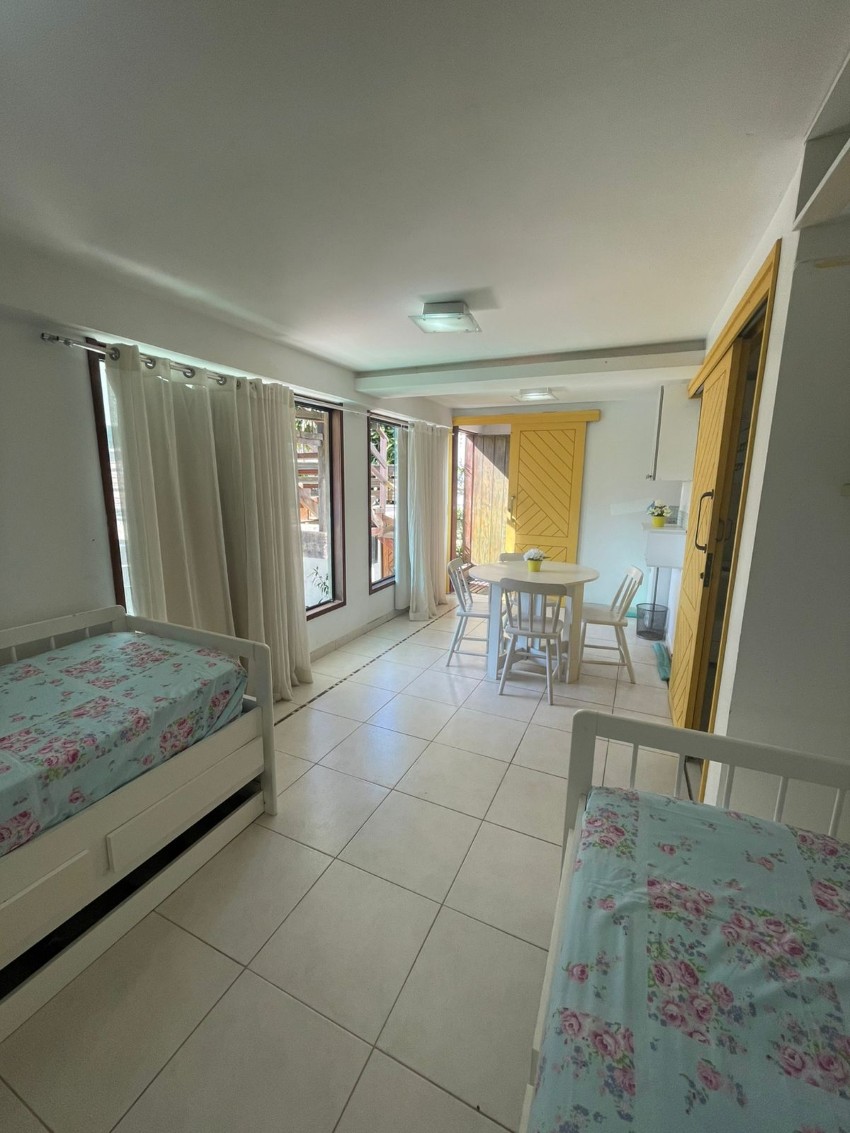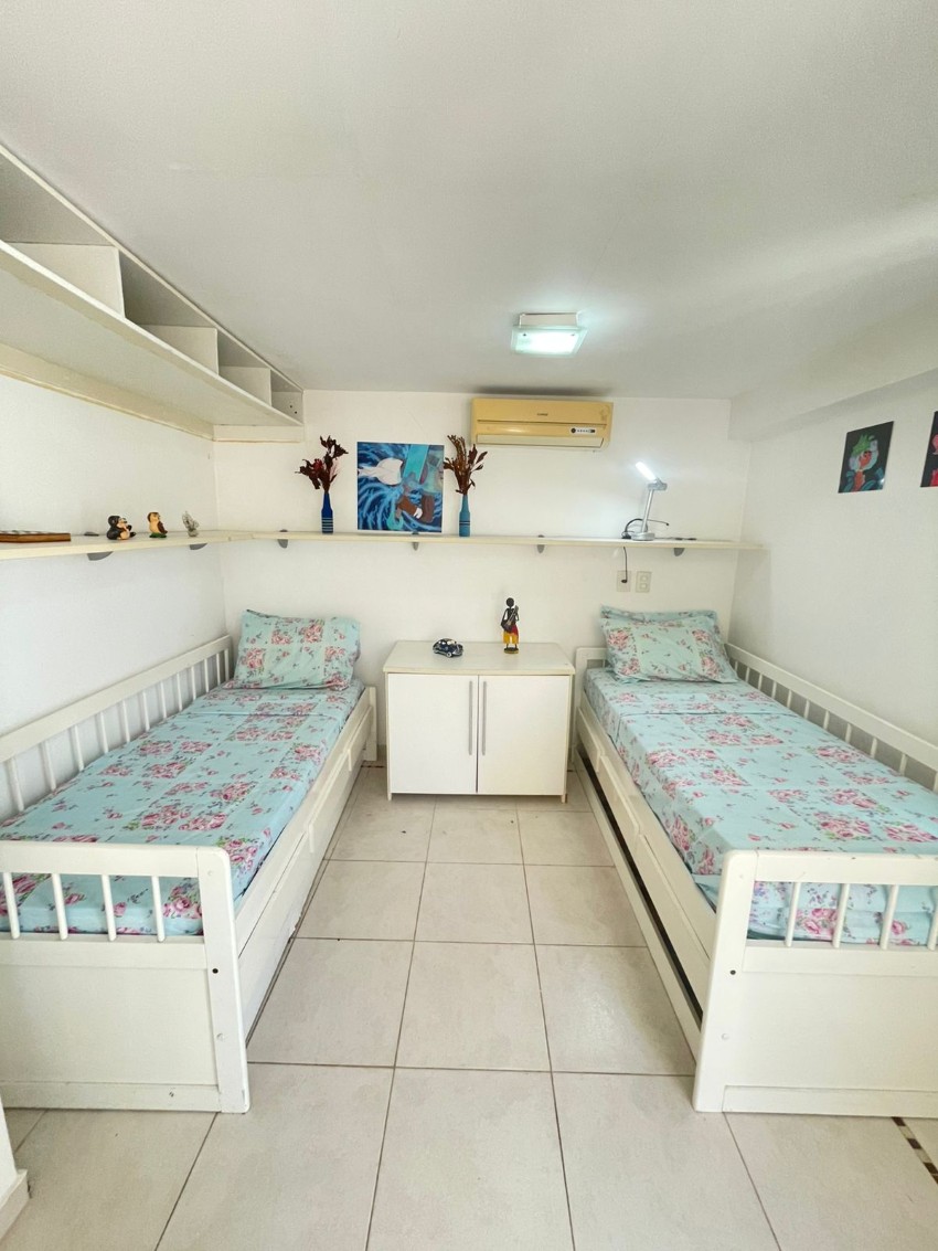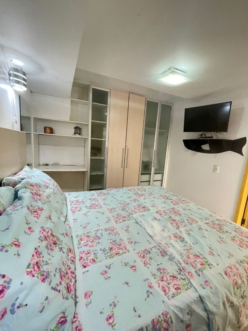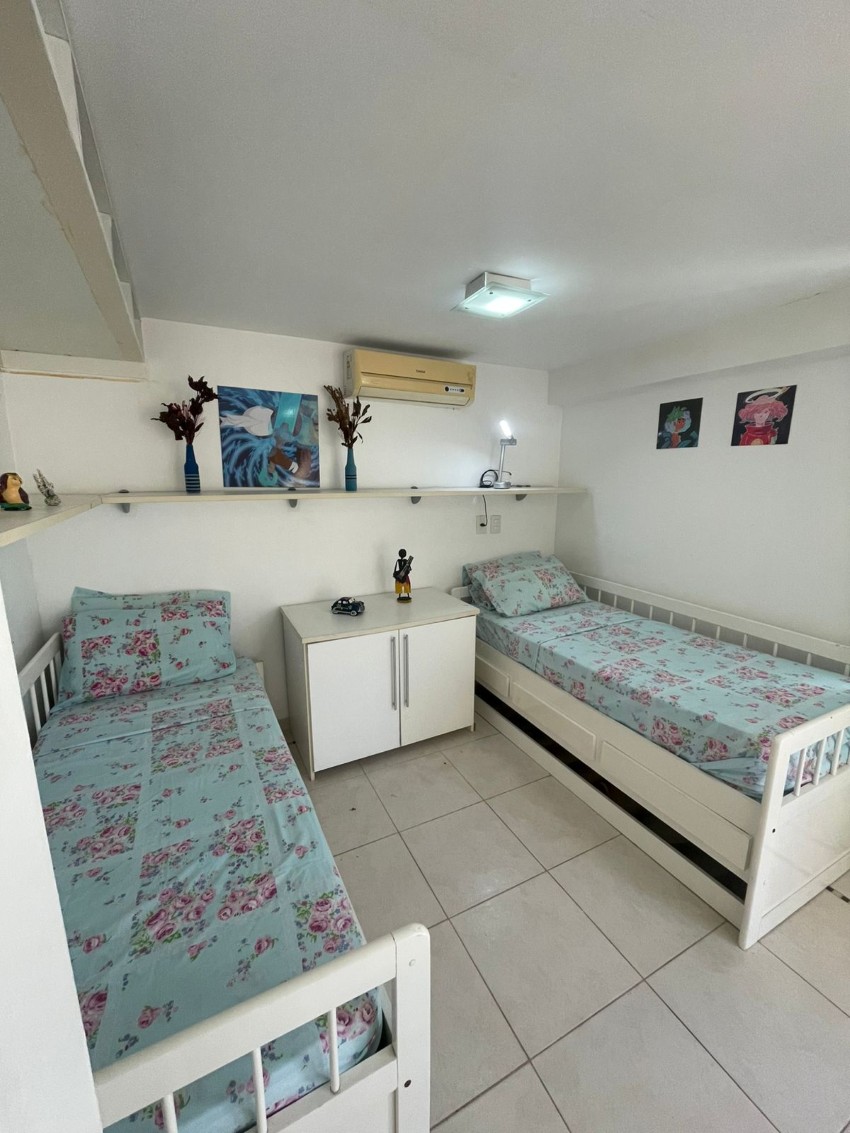 O condomínio oferece piscina e churrasqueiras nas áreas comuns, perfeitas para momentos de lazer e descanso após um dia de praia.