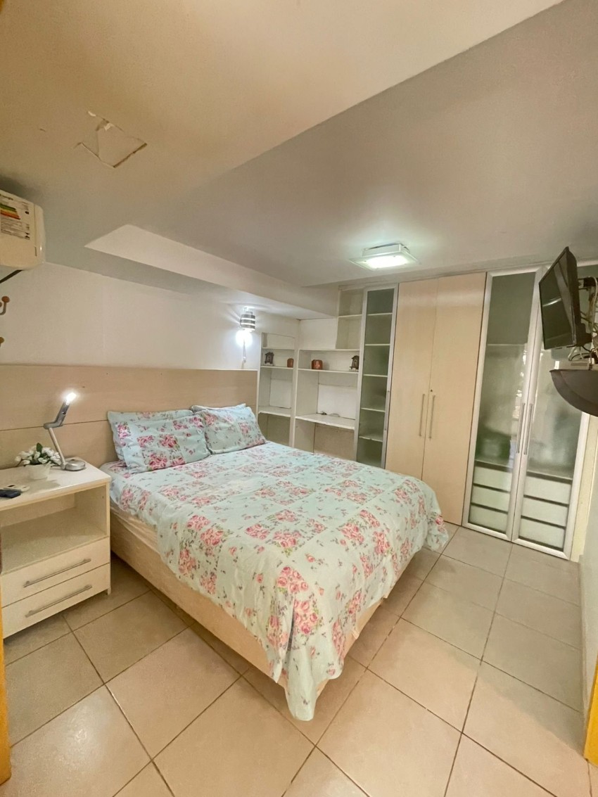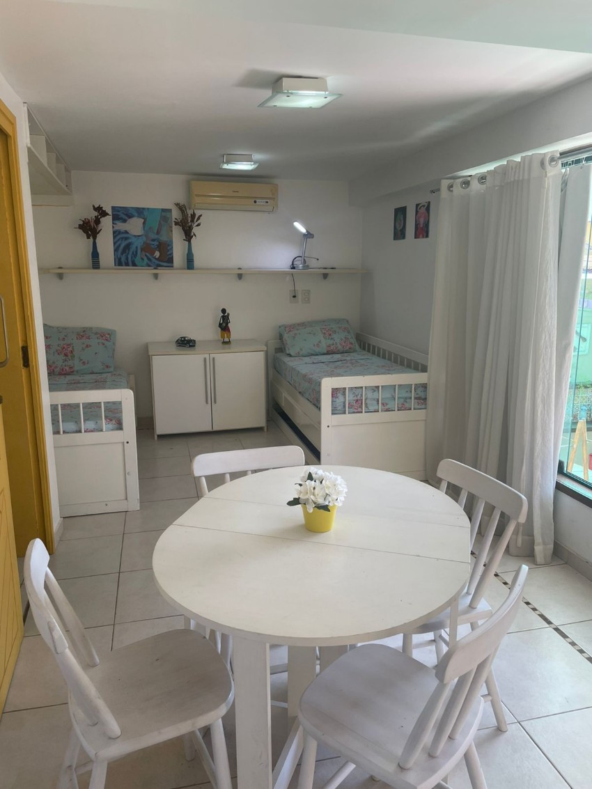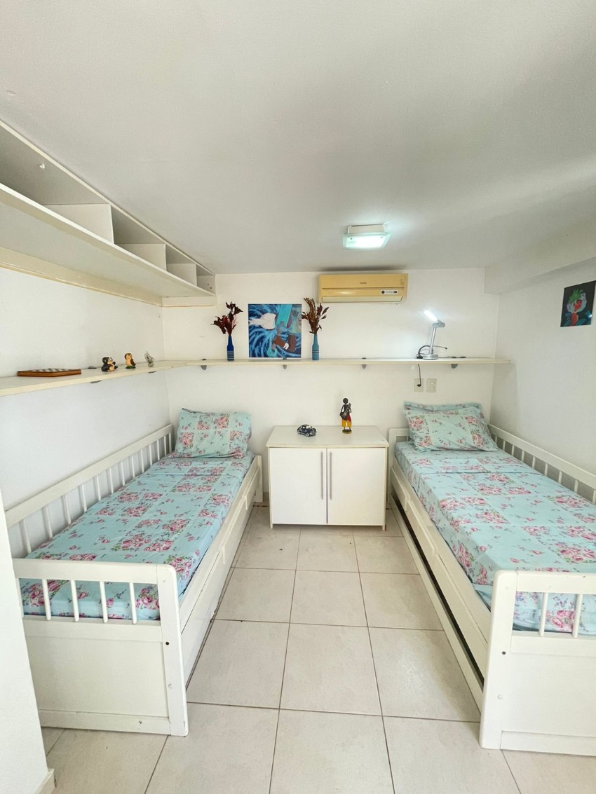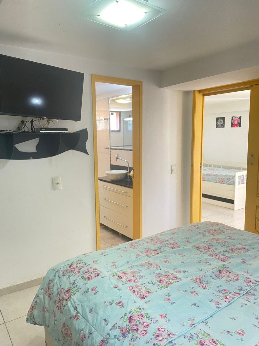 O condomínio oferece piscina e churrasqueiras nas áreas comuns, perfeitas para momentos de lazer e descanso após um dia de praia.