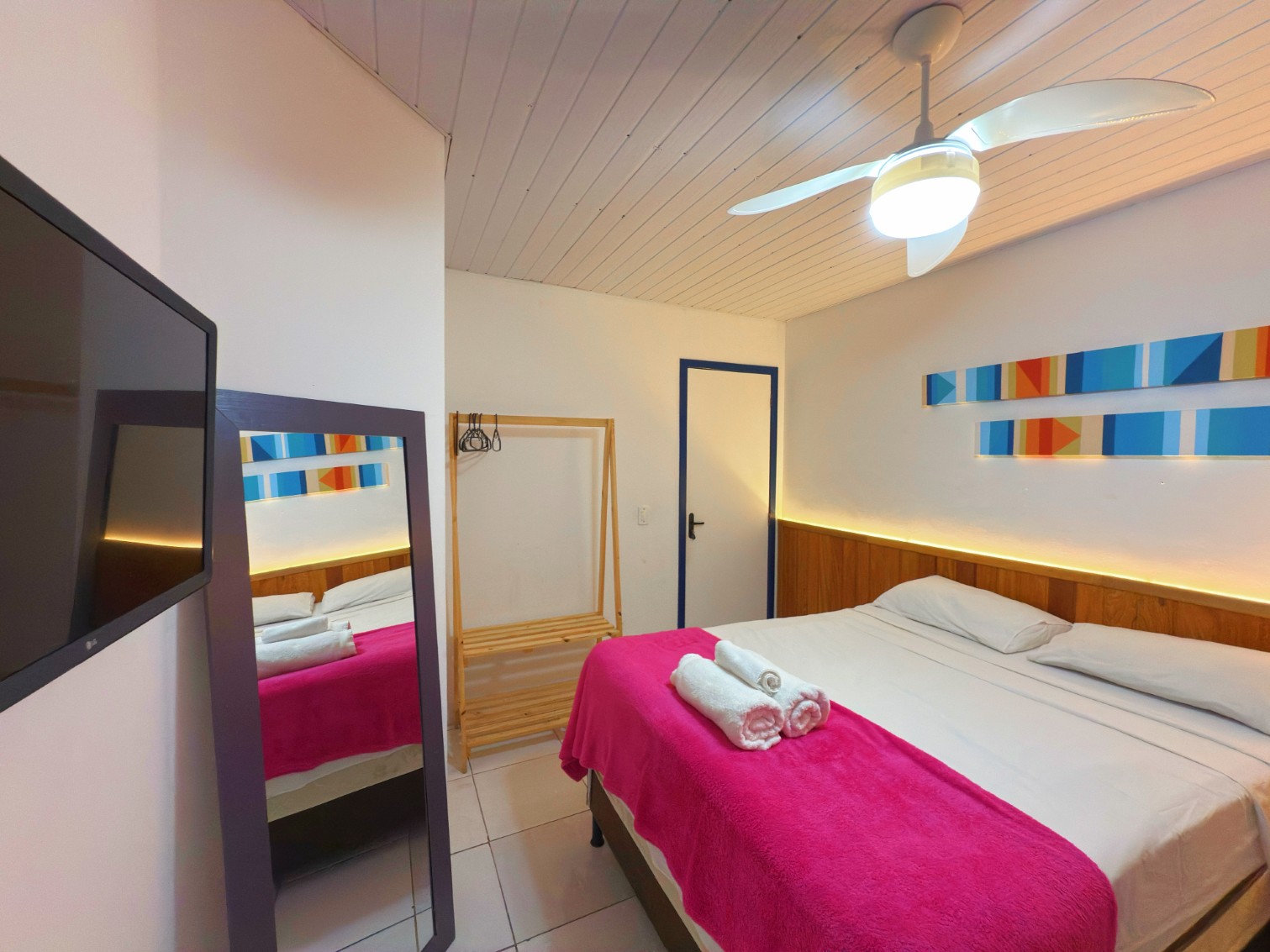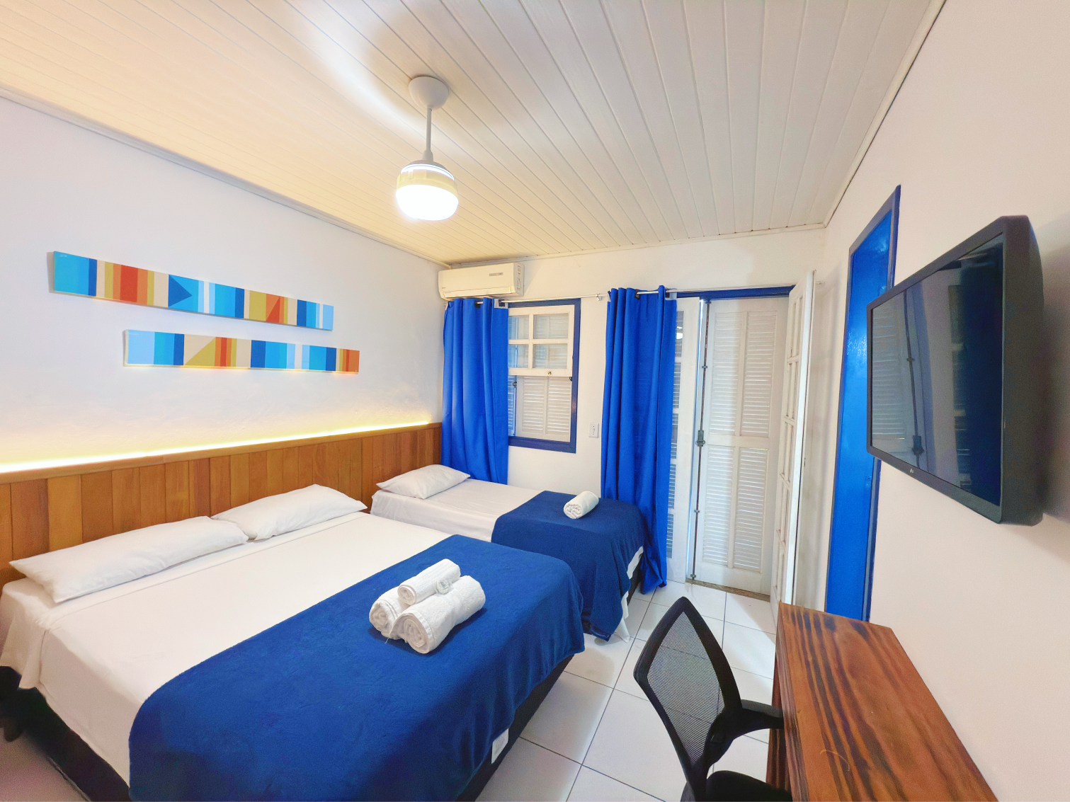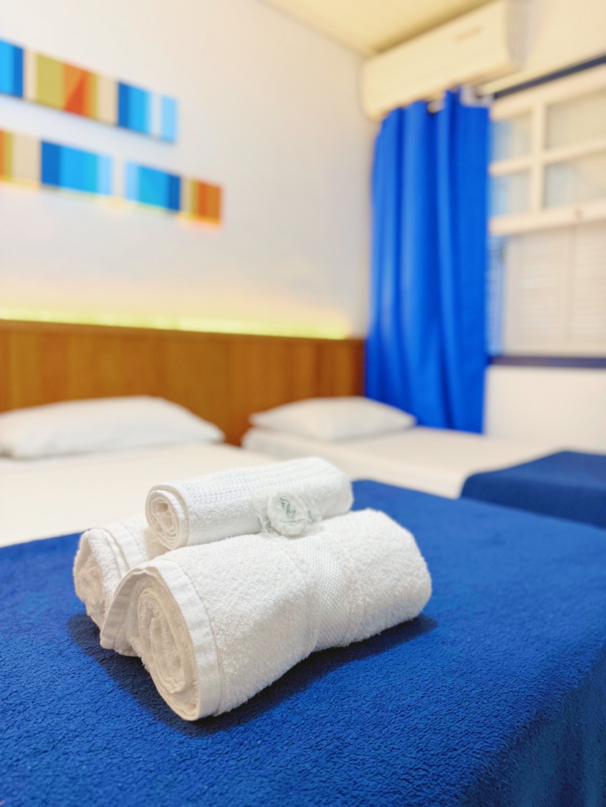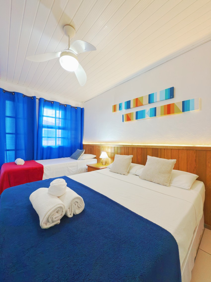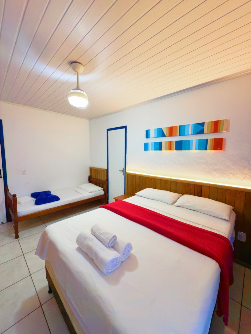 Oferecemos suítes aconchegantes para casais, trios e famílias de até quatro pessoas, com conforto e praticidade para sua estadia.
