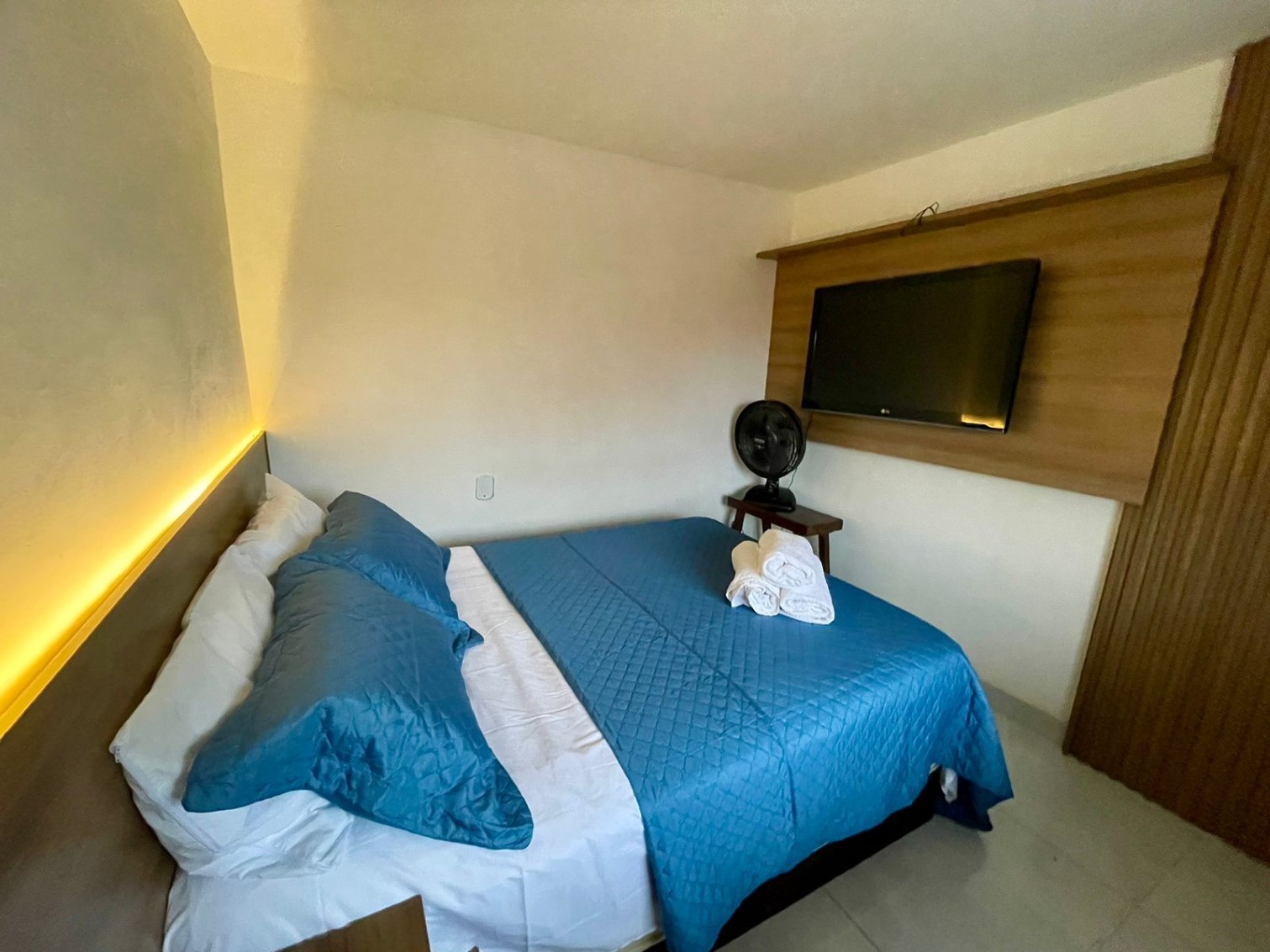 Segundo Quarto: Com duas camas de solteiro estilo box, ideais para amigos ou crianças, com colchões auxiliares disponíveis.