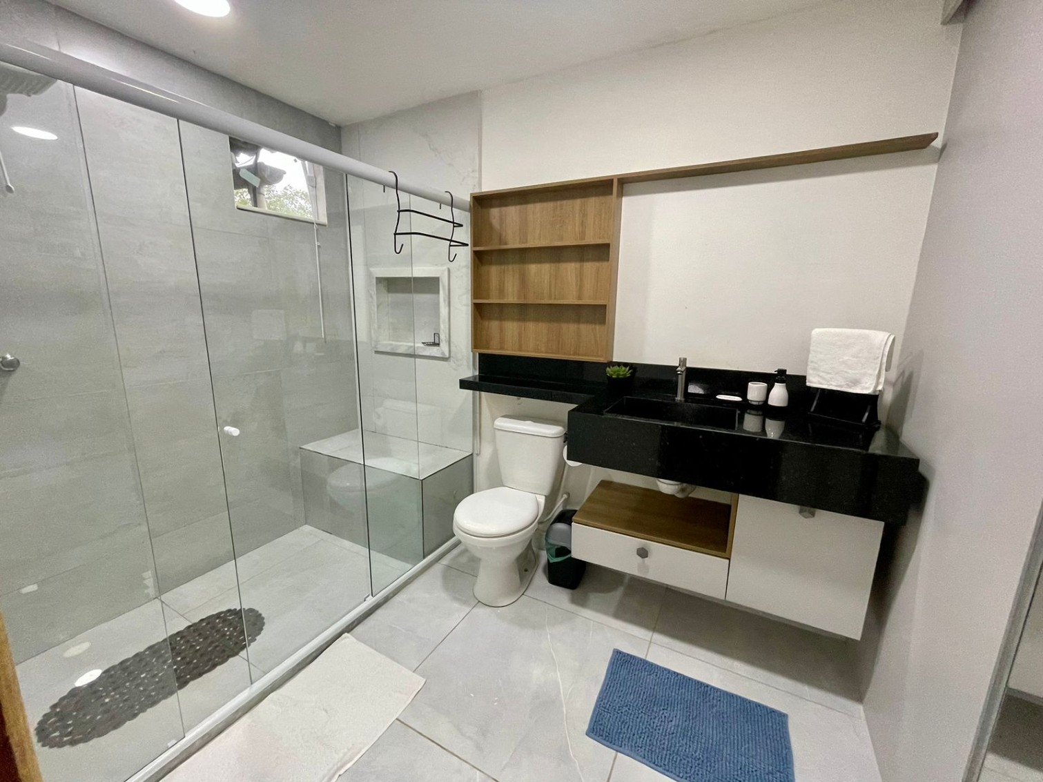Banheiro Moderno: Bem equipado, limpo e agradável, garantindo toda a comodidade que você merece.