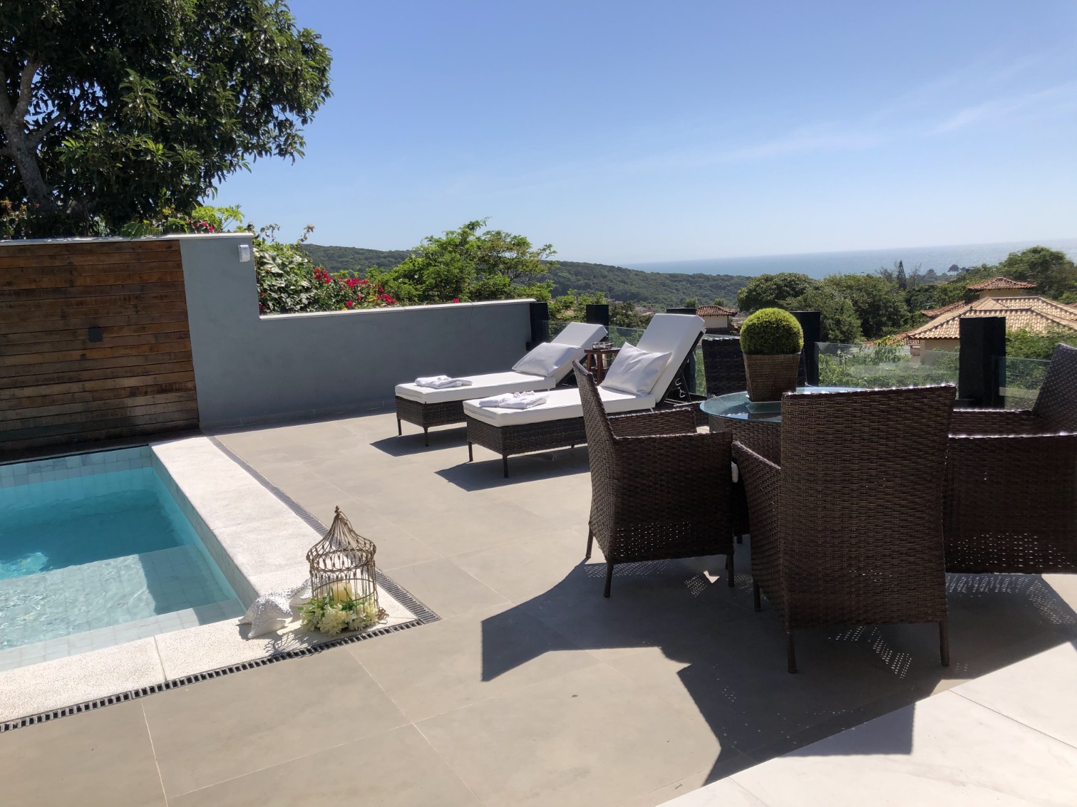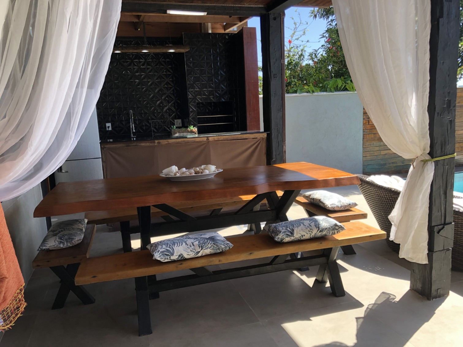 VISTA DESLUMBRANTE, que pode ser apreciada a partir de uma área gourmet agradável e aconchegante, ideal para relaxar e desfrutar do ambiente tranquilo.