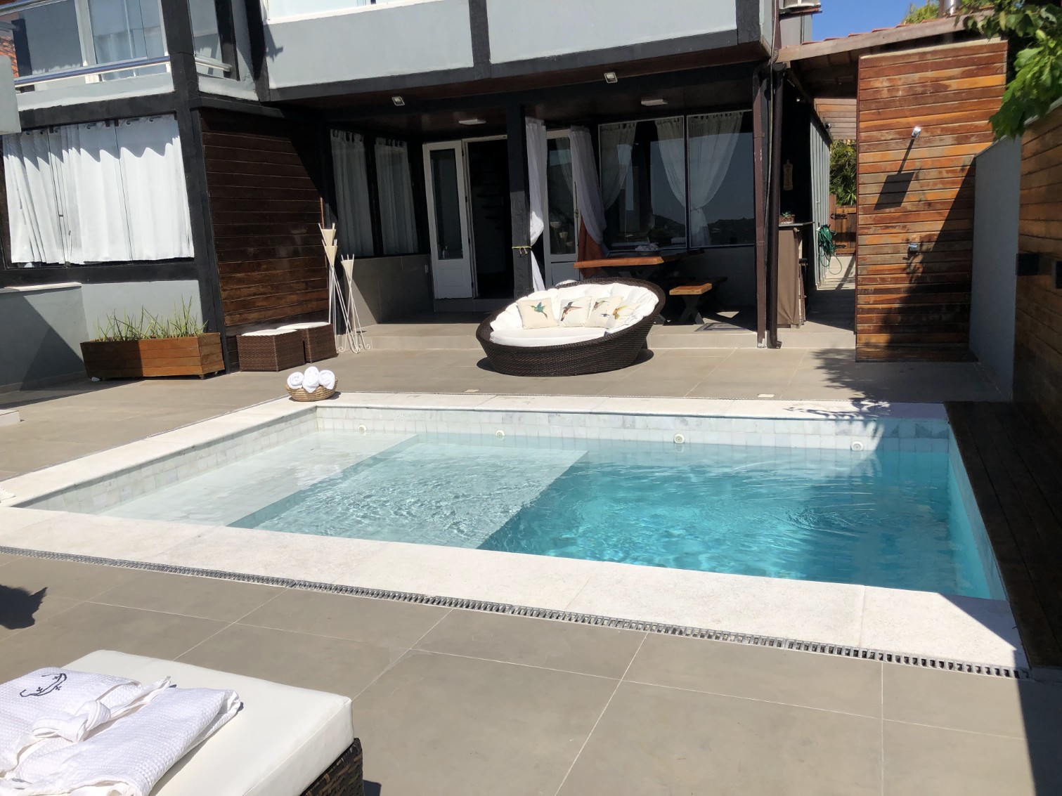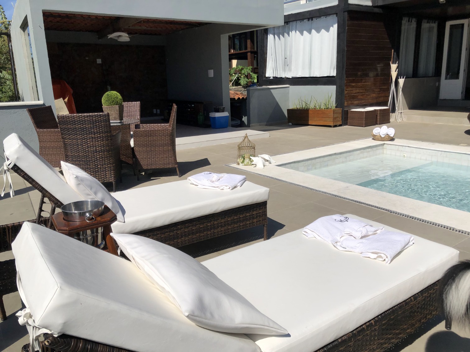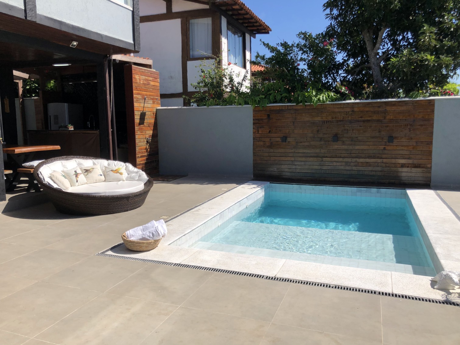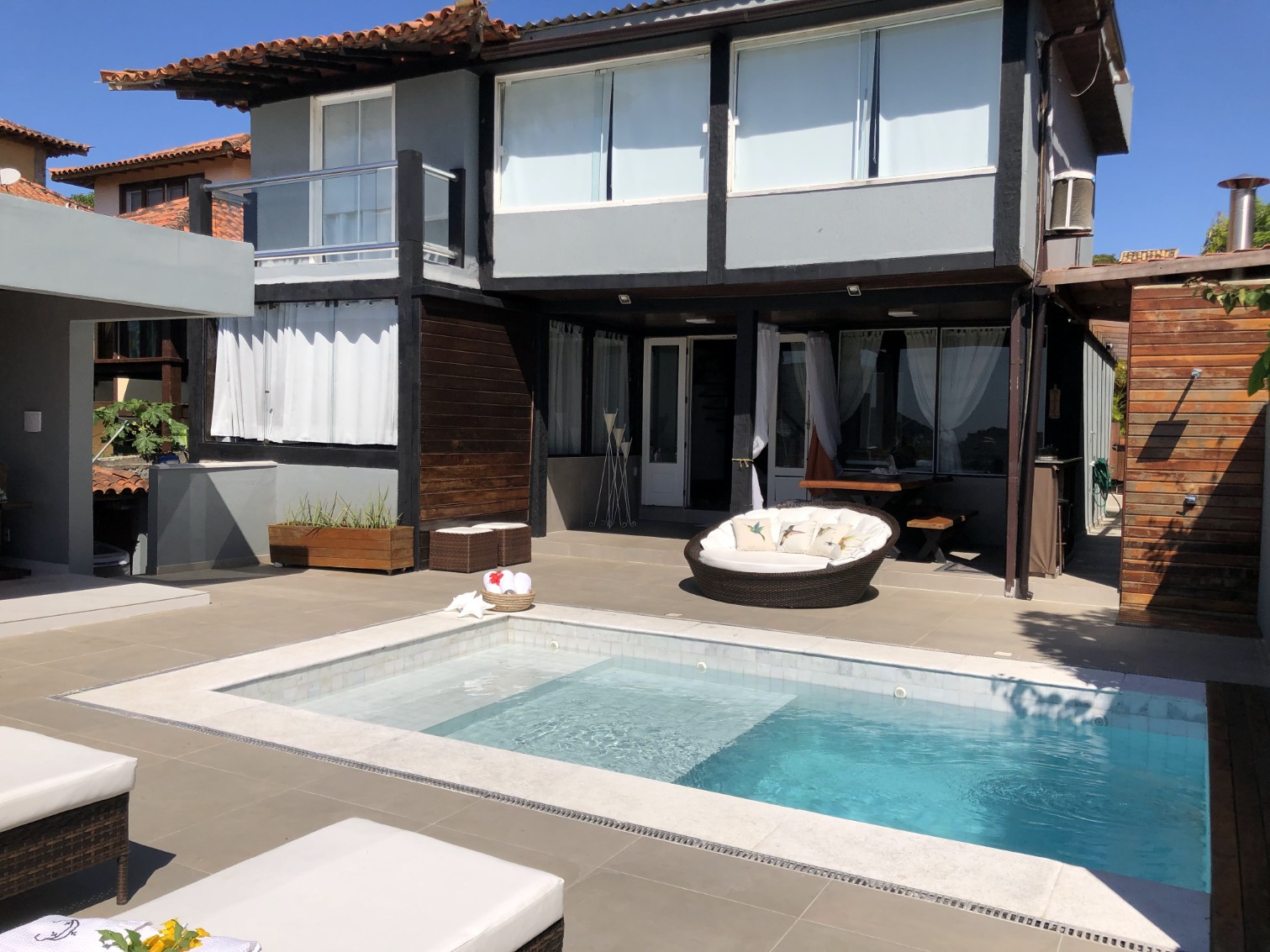 A casa possui 2 suítes e 3 quartos sendo dois com cama de casal e 1 com com 2 camas de Solteiro, totalizando 5 quartos, equipadas e decoradas com muito bom gosto,além de uma piscina, que garante o conforto que você deseja.